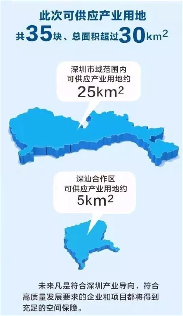 11月5日,深圳30平方公里产业用地全球推介计划新闻发布会上宣布,将一次性集中推出30平方公里产业用地面向全球进行产业招商,将重点布局重大创新载体、新兴产业集群和产业链重点领域关键环节等三大方向。