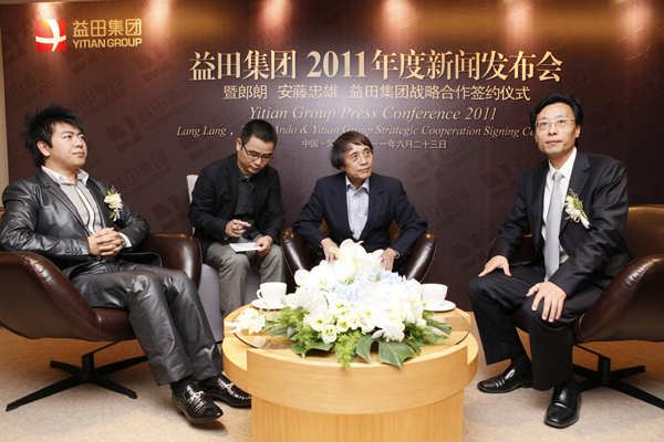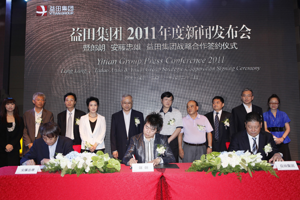 国际钢琴巨星郎朗与世界建筑大师安藤忠雄6月23日在益田威斯汀酒店邂逅,出席益田集团2011年度新闻发布会。暨郎朗、安藤忠雄、益田集团联袂打造“郎朗音乐世界”战略合作签约仪式。