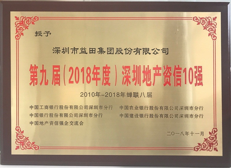 第九届(2018年度)深圳地产资信10强(奖牌)